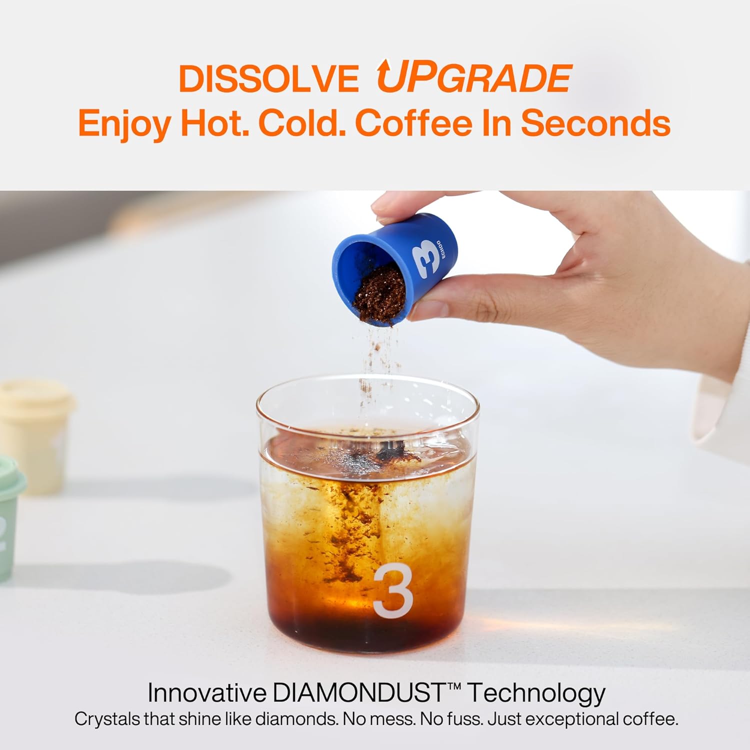 - 𝘿𝙞𝙨𝙨𝙤𝙡𝙫𝙚𝙨 𝙄𝙣𝙨𝙩𝙖𝙣𝙩𝙡𝙮 & 𝙏𝙖𝙨𝙩𝙚𝙨 𝙂𝙧𝙚𝙖𝙩 𝙞𝙣 𝘾𝙤𝙡𝙙 𝙒𝙖𝙩𝙚𝙧: Saturnbird coffee effortlessly dissolves in cold or ice water within seconds, breaking the regular instant coffee limitation of only being brewed with hot water.