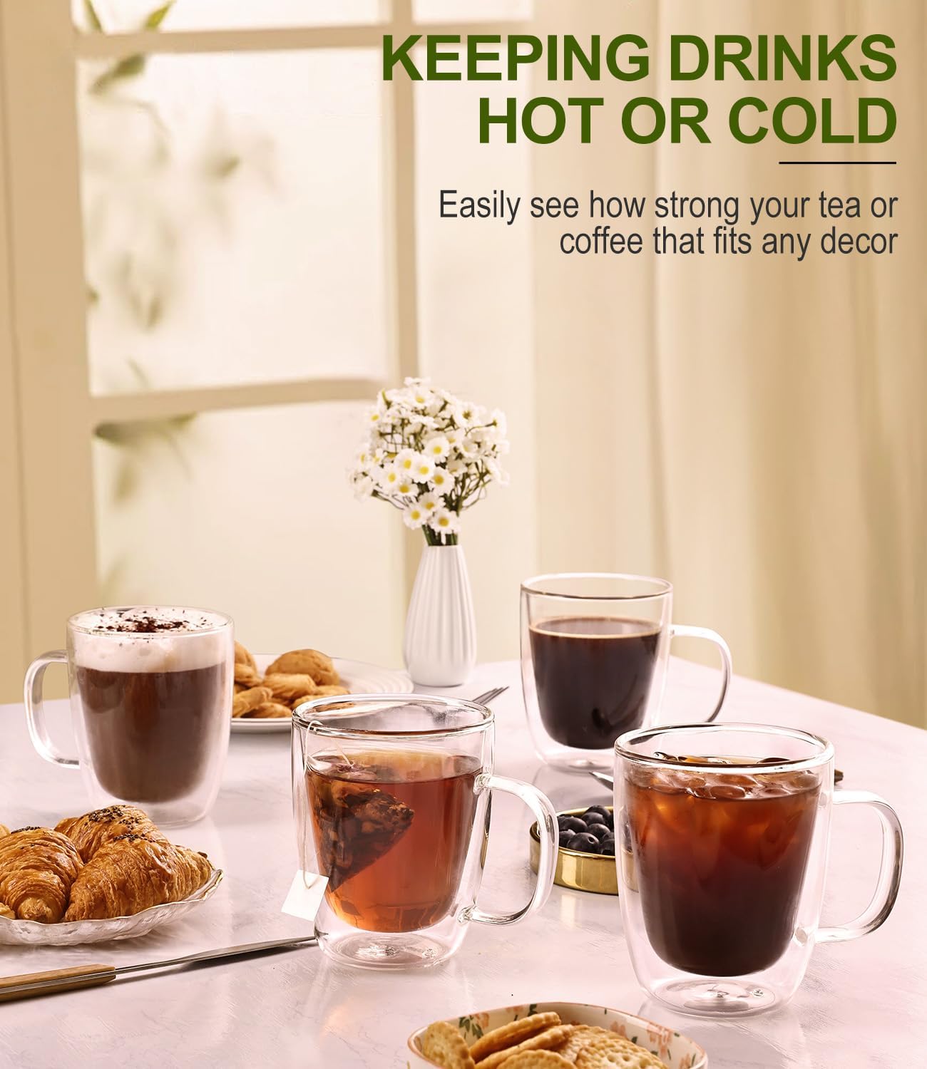 - Keeping Drinks Hot or Cold: These clear glass coffee mugs with double-wall vacuum insulation design,there are both functional and aesthetically.Not only keeps the coffee or tea warm longer than other single-layer glass coffee cups or ceramic tea cup(up to 30-35 minutes),and the glass allow you touch stays cool,enjoy every sip!never burn your hand