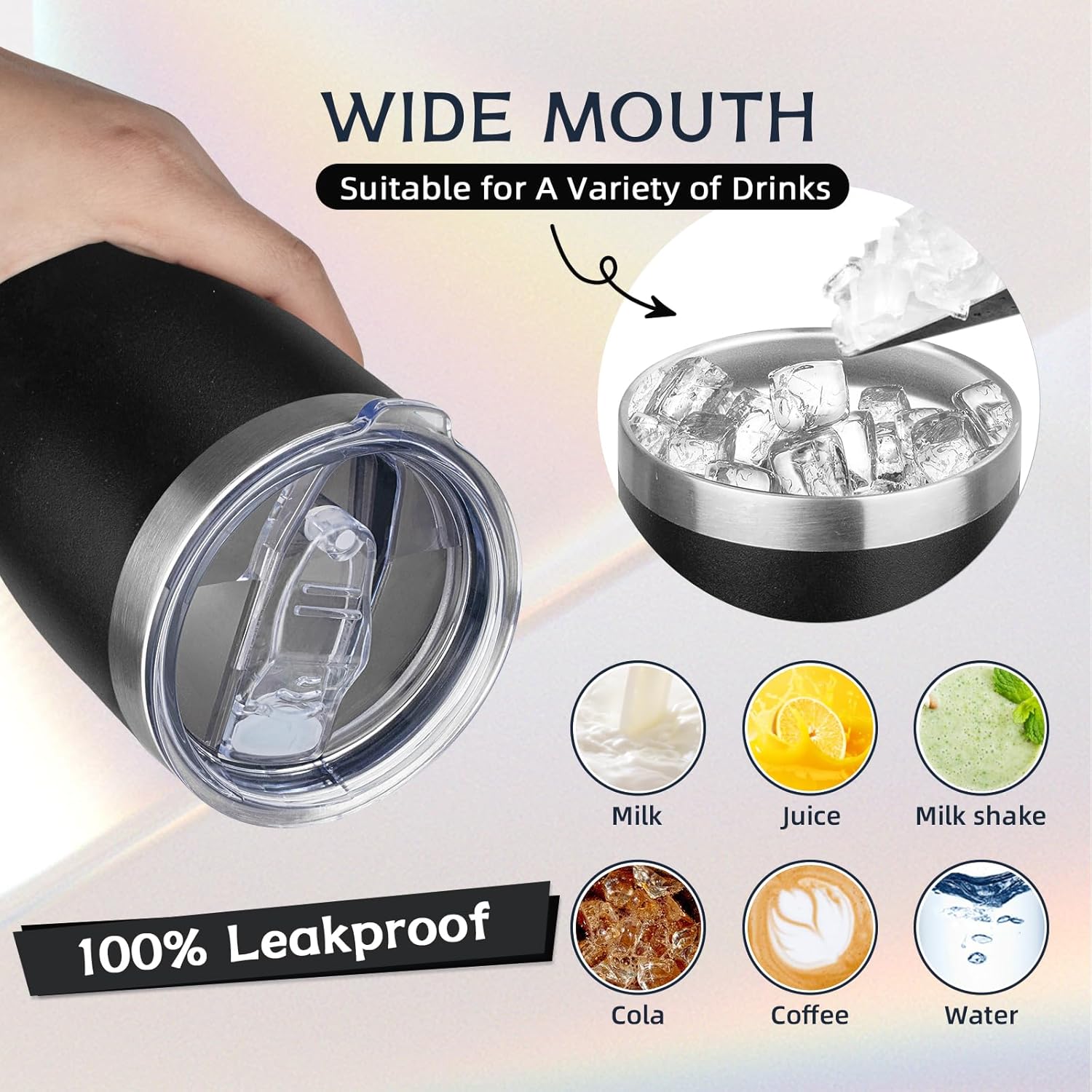 - 🥤【Packing List】: 20oz insulated coffee tumbler with leak-proof lid, two stainless steel straws (one curved and one straight), straw cleaning brush is a great addition (HAND WASH RECOMMENDED). Best for home, office, camping, vacation, sports, travel, etc