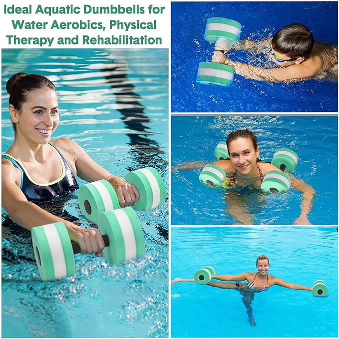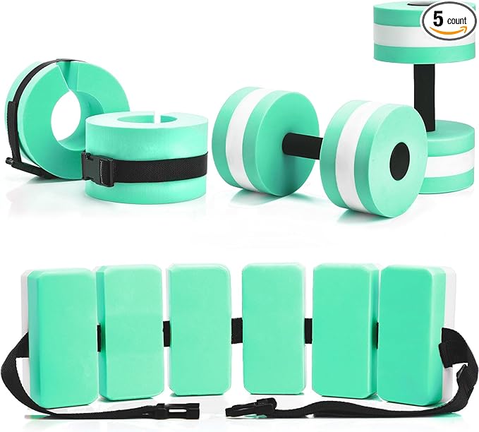 - Complete Package for Water Fitness: this water dumbbell set is a comprehensive package for your water workout regime, including 2 foam swim aquatic cuffs, 2 lightweight aquatic exercise dumbbells, and 1 swim belt, which ensures a full body workout, improving your overall fitness