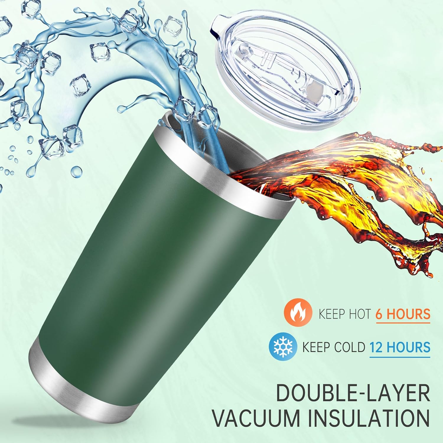 20 oz Tumblers Bulk Stainless Steel Tumbler with Lid Double Wall Vacuum Insulated Coffee Mug 20oz Powder Coated Cup for Hot and Cold Drinks, Dark Green, 12 pack