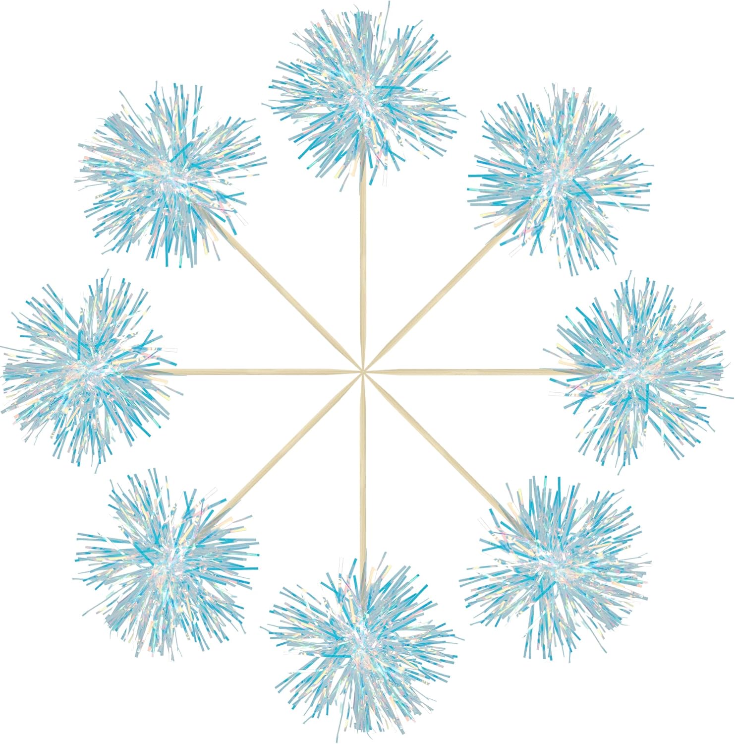 Gyufise 30Pcs Foil Firework Cupcake Toppers Sparkle Tinsel Cake Toppers Tinsel Drink Cake Decoration Cocktail Picks for Birthday Wedding Graduation Party Supplies Laser Blue
