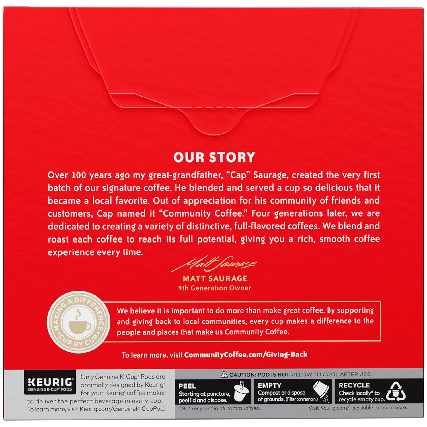 - COFFEE WITH HEART: We strive to make a positive impact on people’s lives — and the communities they call home — by giving back to our military and veterans, teachers, first responders and more