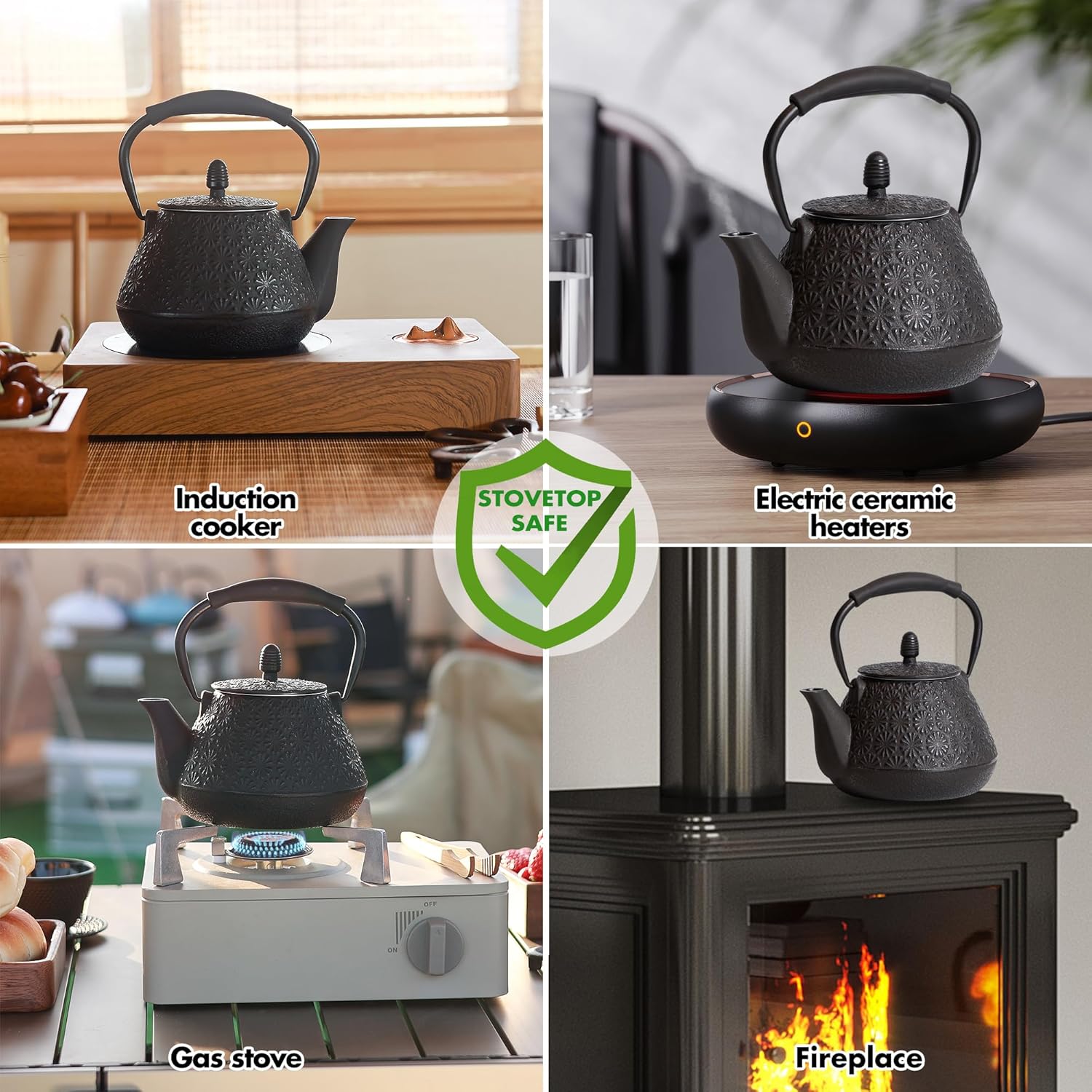 - Versatile Use: This 32oz Japanese teapot is suitable for boiling water, steeping tea, and making coffee, serving 1-2 people with 2-4 cups. It is compatible with induction cookers, electric stoves, natural gas stovetops, as well as firewood stoves and gas stoves for outdoor camping, with the use of a low flame recommended.