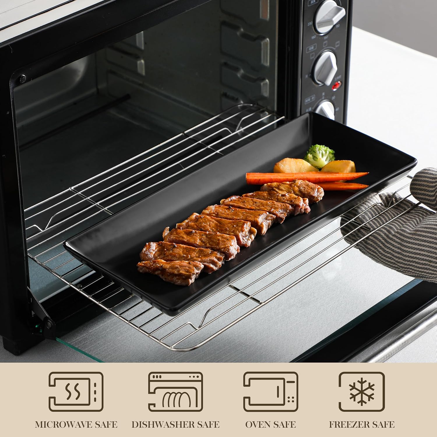 - Sturdy and Stable: Our 12-inch serving tray stand comes with 3 layer sturdy metal stand with three of white rectangular ceramics trays, providing ample space to elegantly present your food and desserts, The black metal rack is robust, and stable,foldable, allowing to flexibly adjust angles and convenient access to food. Our tiered platter stands firm while holding your favorite delicacies. Whether it’s delicate pastries or savory bites, rest assured the serving stand will make your display secure and eye-catching.