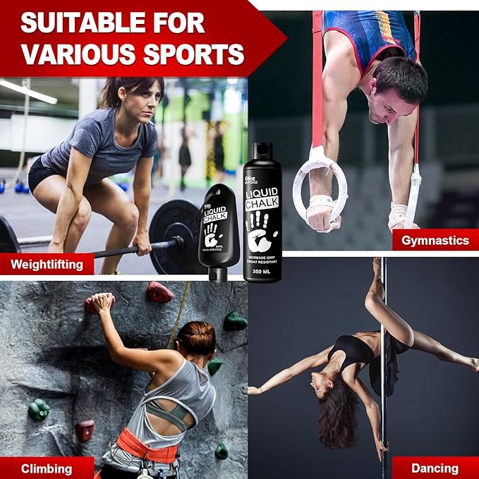 - Enhanced Grip for Performance - Improves grip for weightlifting, gymnastics, cheerleading, dancing, and rock climbing. This liquid hand chalk reduces slippage for safer, more confident training.