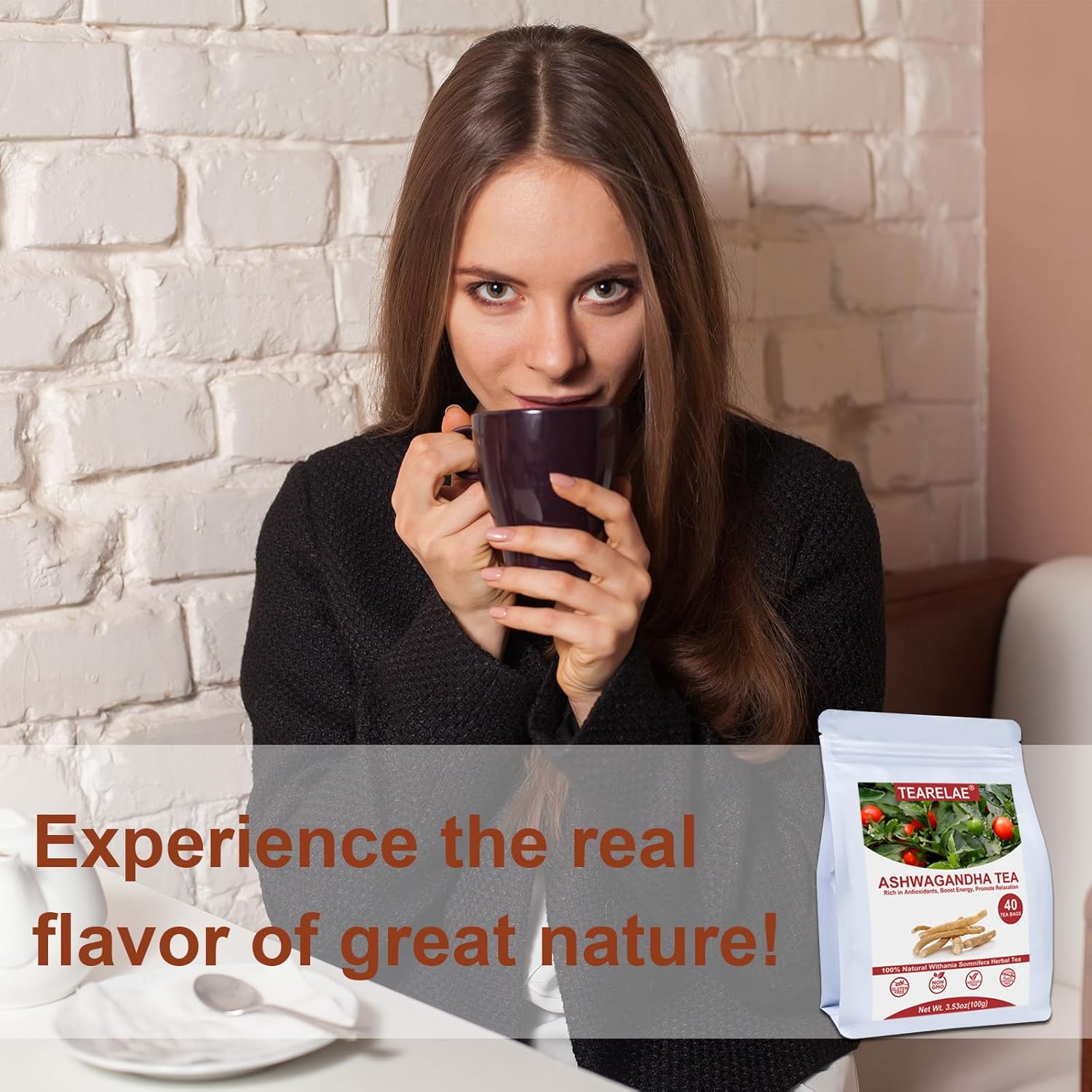 TEARELAE - Ashwagandha Tea Bags - 2.5g x 40 Count - Sourced From India - Premium Natural Cut & Sifted Pure Indian Ginseng Root - Non-GMO - Caffeine-free - Rich in Antioxidants & Boost energy