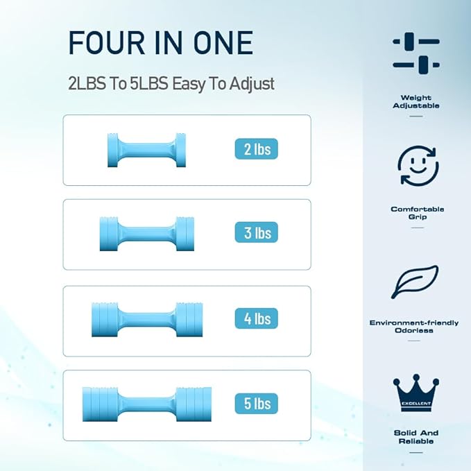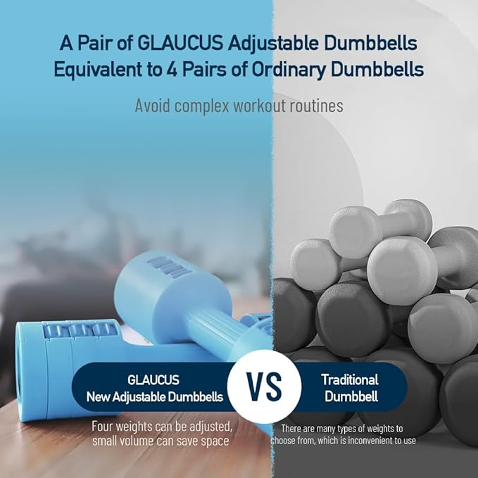 - 【Four-in-One】: The GLAUCUS dumbbell can be adjusted from 2 lbs to 5 lbs in 0.5 lb increments, making it equivalent to having four different dumbbells in one. Perfect for all training styles and ideal for families with varying fitness levels. (You’re purchasing a pair of dumbbells, which includes two dumbbells and 12 removable weights.)