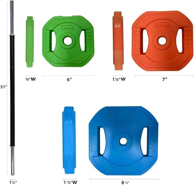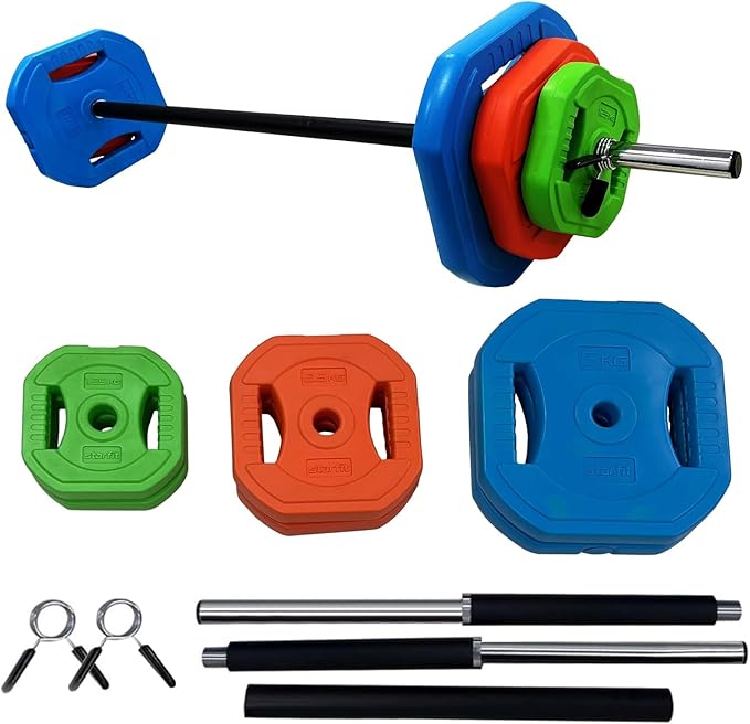 - [VERSATILITY]: Ideal for various exercises, the barbell set is perfect for personal workouts, offering versatility with its easy-to-change weight plates for both strength training and cardio pump sessions.