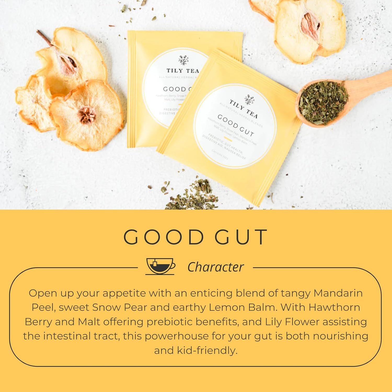 - GUT HEALTHY: Tily Tea Good Gut herbal blend is a powerhouse for your gut, with the digestive properties of Hawthorn Berry and Mandarin Peel acting as an all-natural appetite boost suitable even for kids.