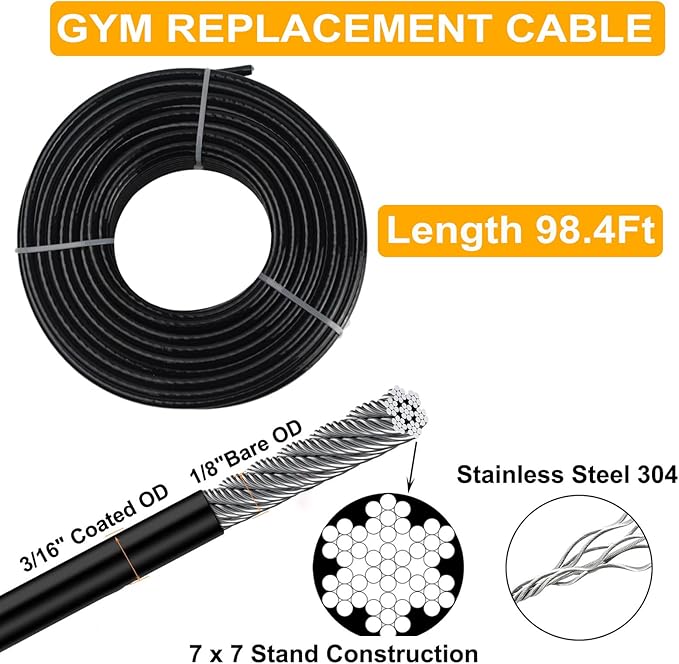 - 【Wide Applications】The cable can be widely used in home gym, indoor or outdoor sports.Suitable for training triceps, biceps, back muscles, deltoids with pulley systems. You can cut it to the length you need as a replacement of pulley cable.