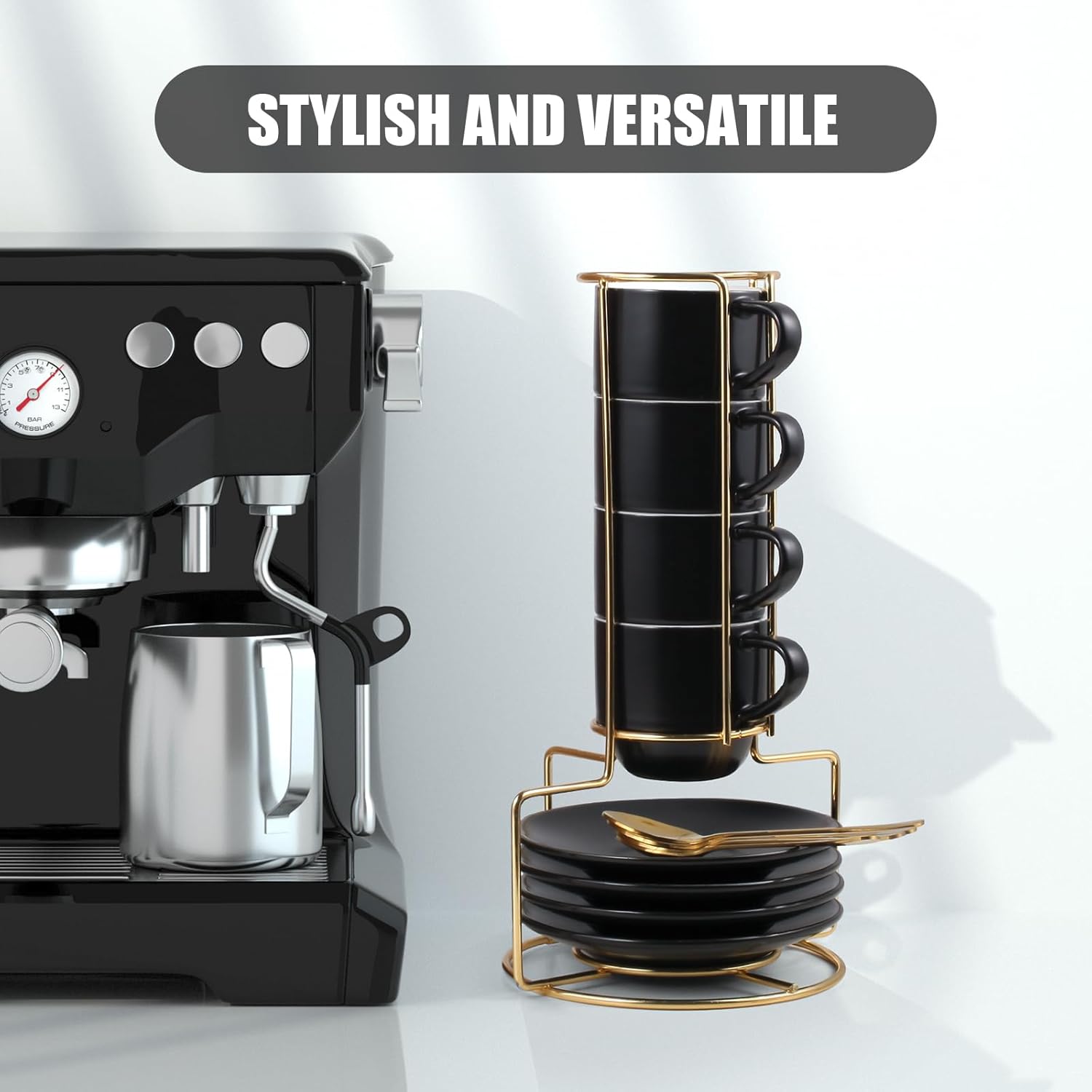 - Espresso Machine Accessories: We've thoughtfully included saucers and spoons with each set of cups, making it convenient for you to enjoy your morning espresso time without worrying about dirtying the table or searching for a coffee stirring tool. Plus, we've added a metal rack as a bonus, allowing you to easily organize this entire set of small coffee mug