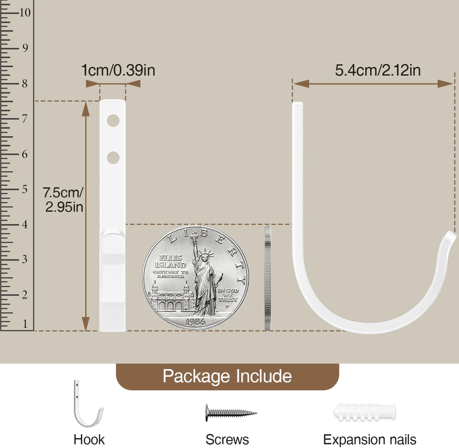 10-Pack Wall Hooks for Towel/Coat - 22LB Heavy Duty Metal Hanger Wall Mount, for Outdoor, Closet, Door, Shelf, Bathroom, for Backpack, Cup, Clothes, Mug, White Matte Screws Included