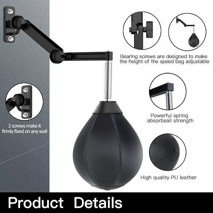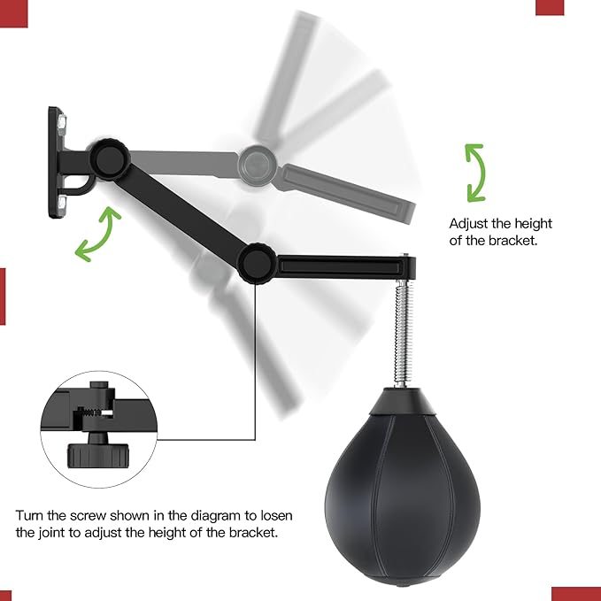 - Space Saving and Height Adjustable - This wall-mounted punching bag can save a lot of space at home. It only needs to be installed on the wall in a small place. Unlike another rection ball, It won't take up the position. Moreover, the height of the biggest highlight of this wall-mounted boxing ball can be adjusted arbitrarily and can be installed at will. No matter how small a child can play, it is suitable for anyone.