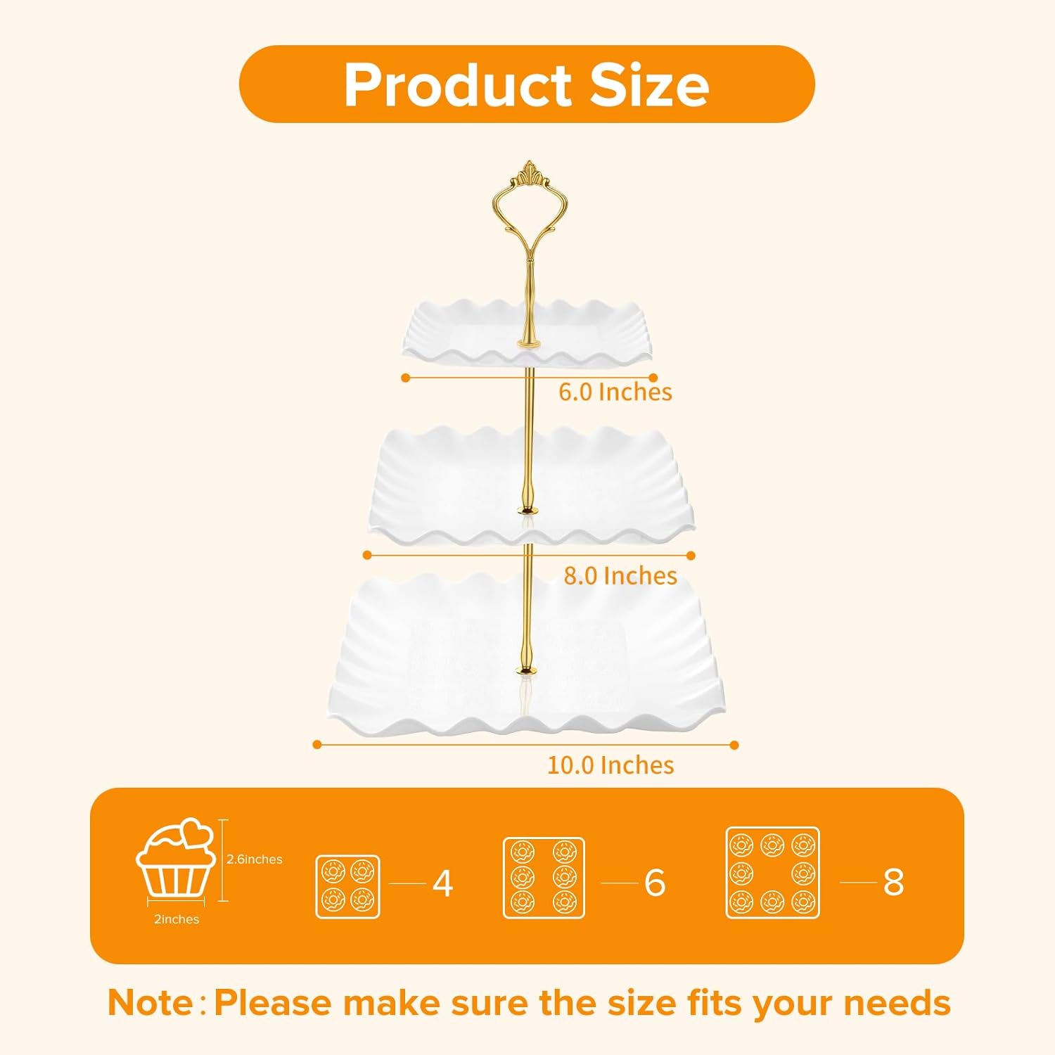 - Perfect for Every Occasion: Versatile and practical, our tiered tray stand is perfect for family gatherings, weddings, birthday parties, and more. Ideal for displaying cupcakes, cookies, candies, donuts and more