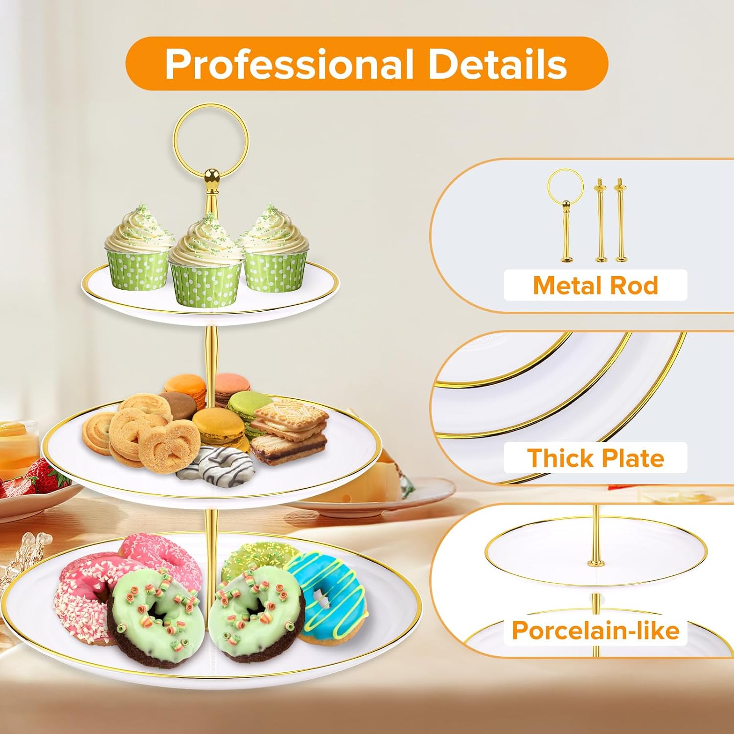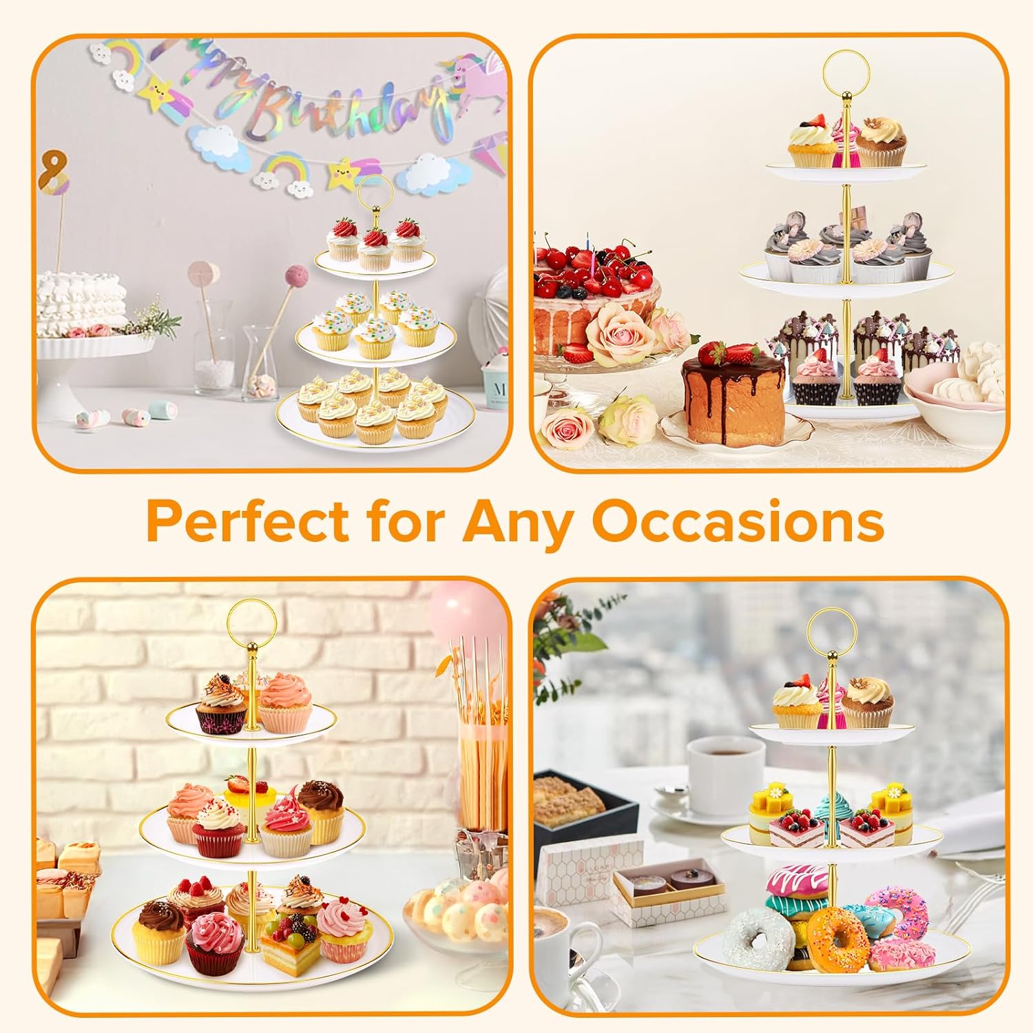 - Perfect for Every Occasion: Versatile and practical, our tiered tray stand is perfect for family gatherings, weddings, birthday parties, and more; Ideal for displaying cupcakes, cookies, candies, donuts and more