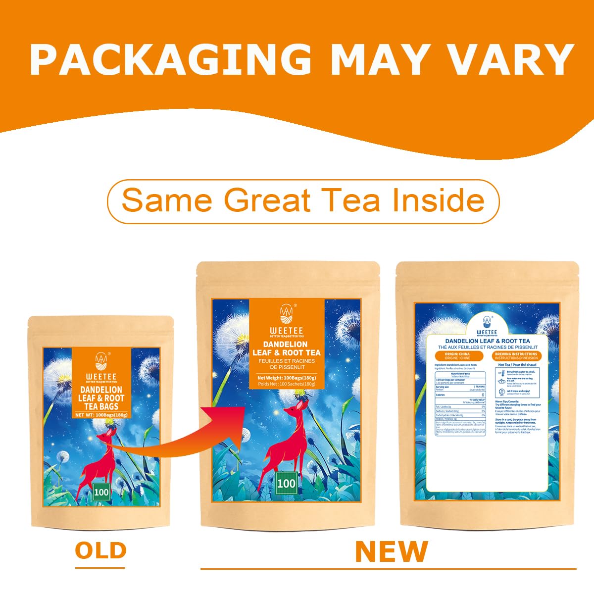 WT WEETEE Dandelion Leaf & Root Tea Bags, 100% Pure Dandelion Leaf and Roasted Dandelion Root Blend, Natural Caffeine-free Herbal Tea 2g x 100 Counts