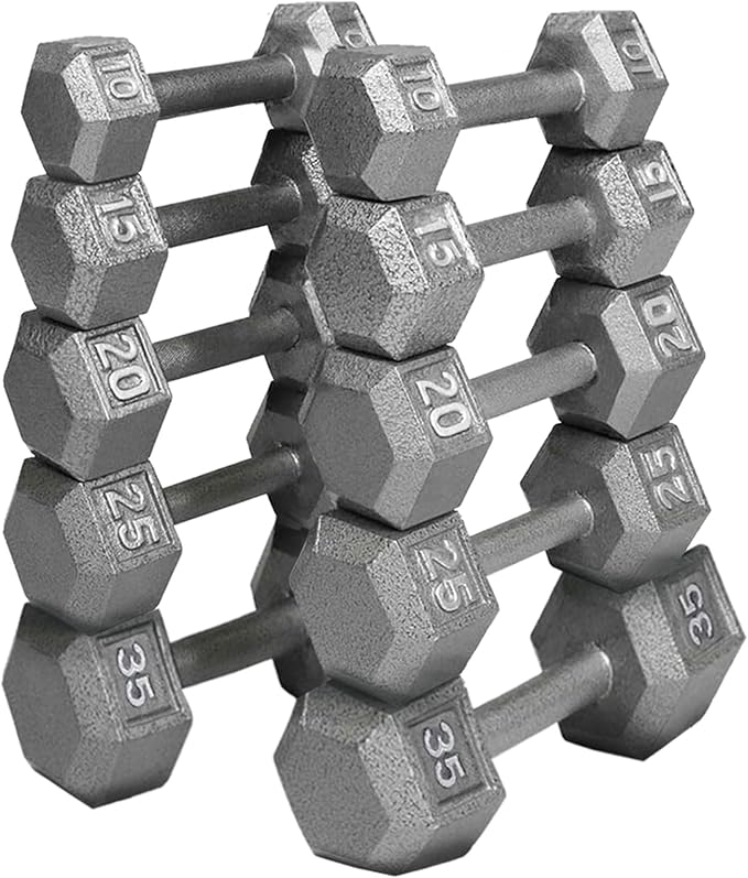 - Hex Design & Non-Slip: Features a hex design that stops the weights from rolling away during use and is made with PVC non-slip coating to provide a solid grip, while the high-quality cast iron construction offers increased durability and longevity for lasting use