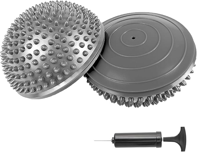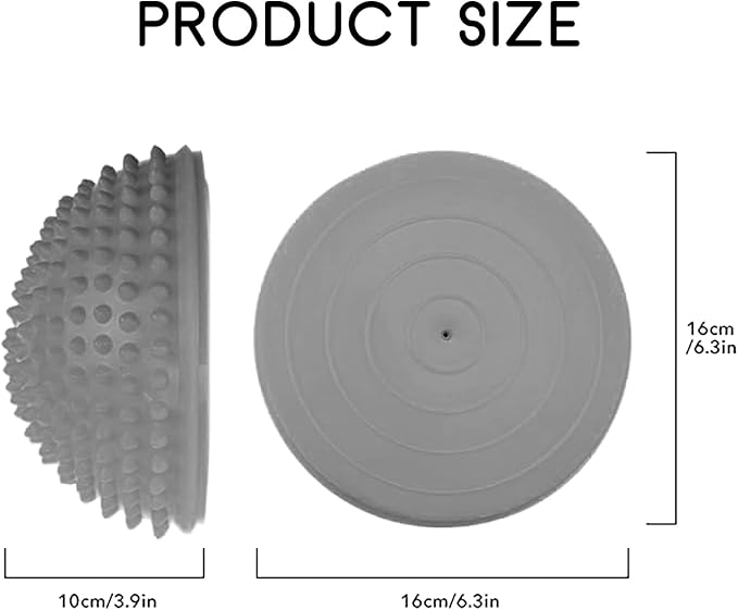 - PREMIUM QUALITY: The balance domes are made of qualified PVC material, safe, pliable and comfortable, and comes with a hand pump for easy inflation and full instructions. The half ball balance pod has a size of 16cm (6.3") in diameter x 10cm (4") in height. Comes in Colour silver and as a set of 2.