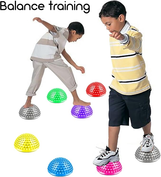 - MULTI-PURPOSE: The pimpled balance pods are good for friends, families like foot therapy; Ideal toy for your children. The balance board can be used as well for Pilates, in the gym, at home or in the office and easily fits in a bag for transport. Also suitable for kids to develop motor skills with fun and games.