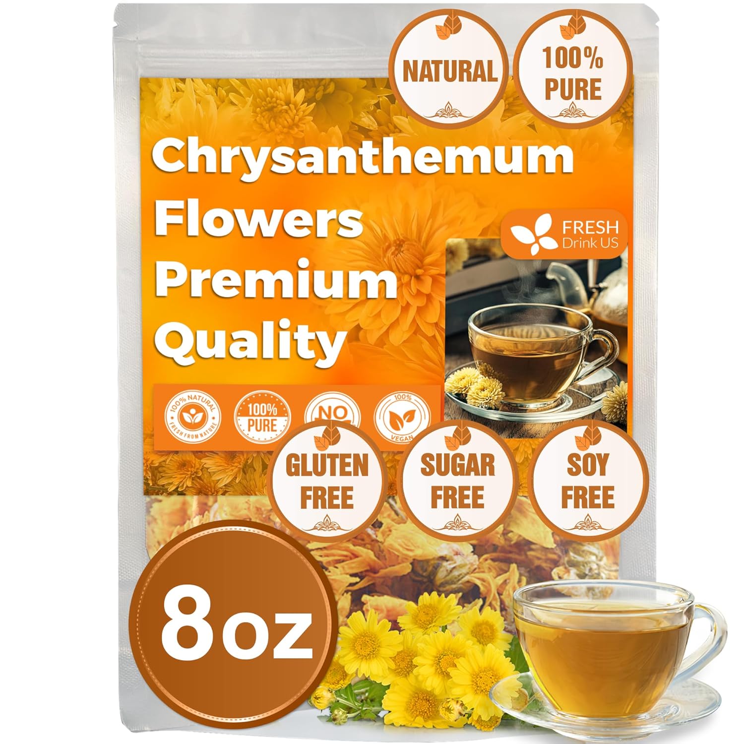 FreshDrinkUS, Premium 8oz Chrysanthemum Flowers, 100% Natural & Pure Chrysanthemum Flower Dried, Chrysanthemum Herbal Tea, No Additives, No Caffeine, Vegan