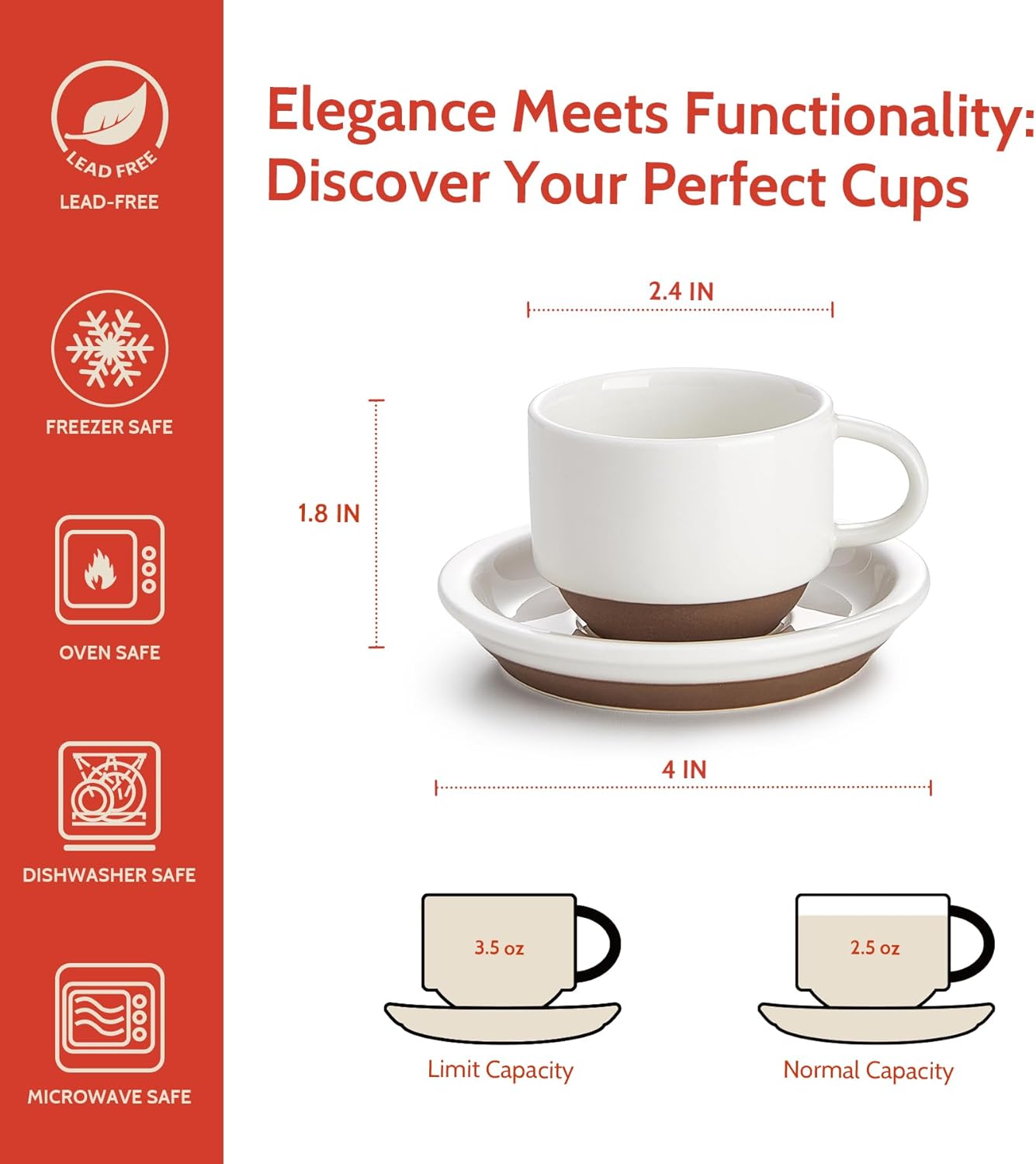- PERFECT COFFEE EXPERIENCE SELECT: Whether you're enjoying a solo espresso or sharing a cup with a loved one, these cups will bring joy to any coffee lover's day. Experience the perfect blend of simplicity and sophistication with our 2.5 oz Espresso Cups. Designed to effortlessly complement your espresso maker, this set includes saucers and a convenient stacking stand. The thick cup walls excel at heat retention, ensuring your brew stays warm.
