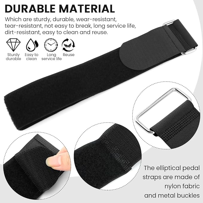 - 【DURABLE MATERIAL】The elliptical pedal straps are made of nylon fabric and metal buckles, which are sturdy, durable, wear-resistant, tear-resistant, not easy to break, long service life, dirt-resistant, easy to clean and reuse.