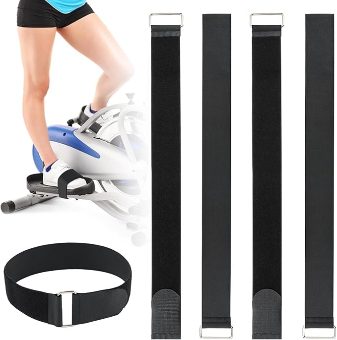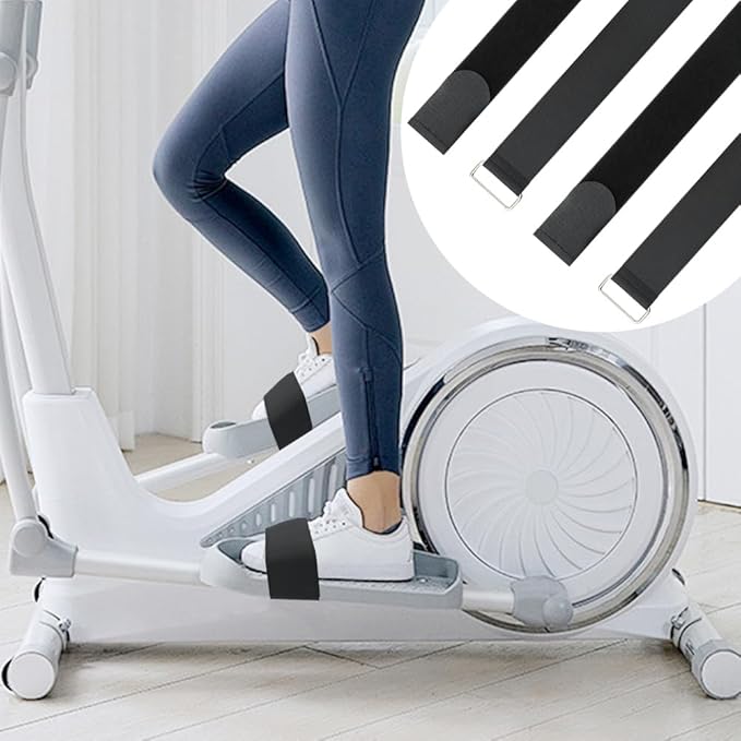 4 Pcs Ellipse Leg Exerciser Machine Pedal Straps, Adjustable Elliptical Trainer Straps for Under Desk, Elliptical Peddler Foot & Leg Training Strap for Fitness Home Sports Office Accessories