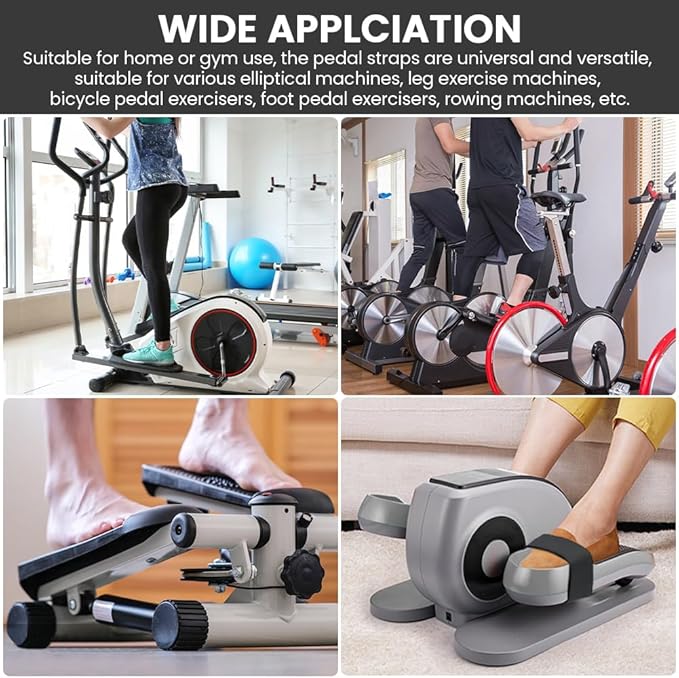 - 【WIDE APPLCIATION】Suitable for home or gym use, the pedal straps are universal and versatile, suitable for various elliptical machines, leg exercise machines, bicycle pedal exercisers, foot pedal exercisers, rowing machines, etc.