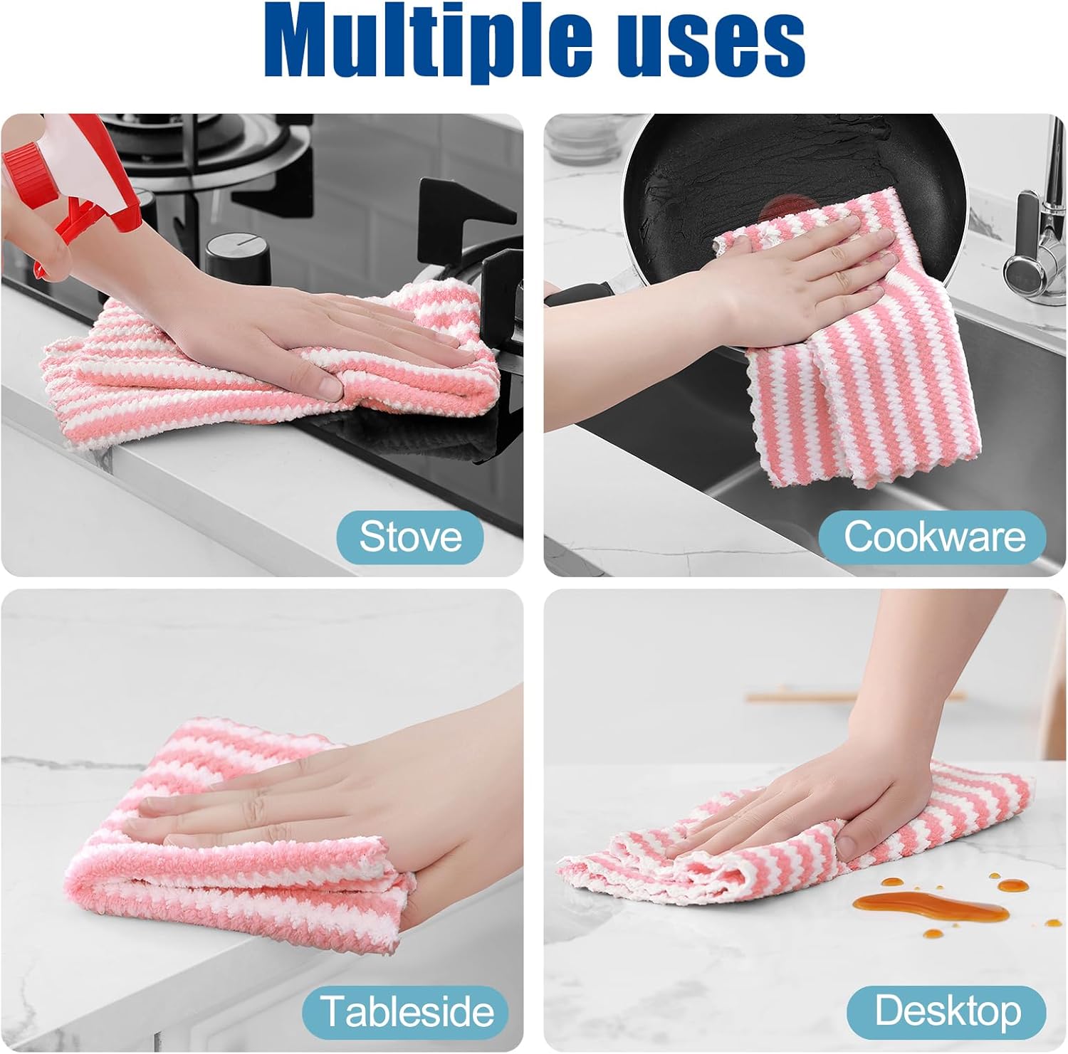 - Value Pack: The collection includes 12 pack Microfiber cleaning cloths, The wavy pattern design and available in a variety of colors to coordinate with any kitchen décor. Measuring 10 x 10 and 10 x 20 inches, it is suitable for any home kitchen needs.