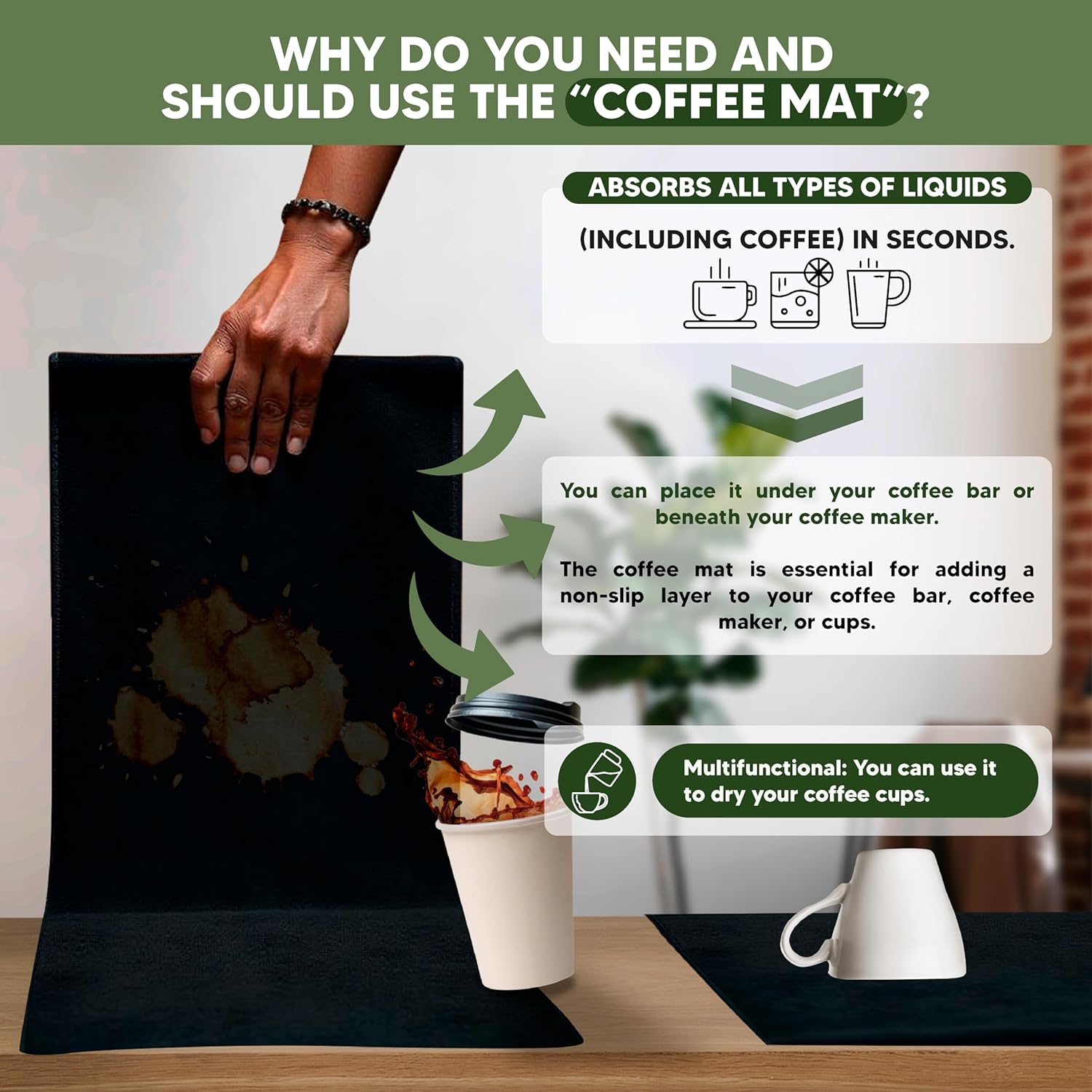 - 🧼 ENJOY A CLEANER, DRYER, MORE STYLISH SPACE: The ultra-absorbent silicone mat protects your counters from spills and adds a non-slip surface beneath your machine. Less mess, more peace of mind—and it even doubles as a drying pad for your favorite mugs.