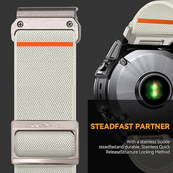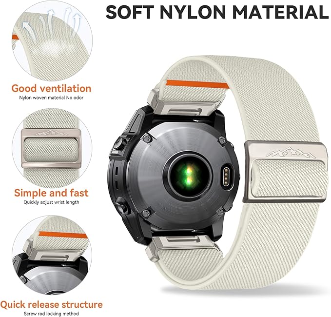 - 【User-Friendly Material】Compatible with Garmin Fenix 7/7 Pro/Fenix 6/6 Pro/Fenix 5/5 Plus Band Elastic Nylon Braided Strap is made of high quality stretchy nylon, super soft and lightweight, breathable and comfortable. This eco-friendly nylon and the sweat-absorbing property make this strap super skin-friendly.