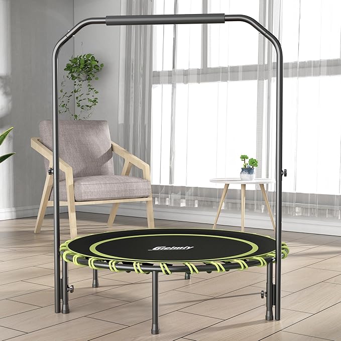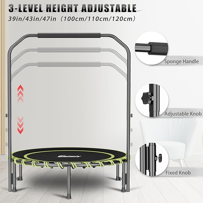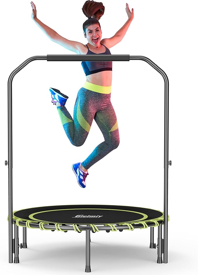 - ✅【Stable Structural Design】:Gielmiy Fitness Trampoline is made of thick tube which is 25MM, 6 legs 25MM of the diameter ,supports for more durability and covered with White powder coating to prevent rust and corrosion.Thanks to its premium quality, boasts an extended lifetime to witness your precious journey from a total beginner to a star pro!