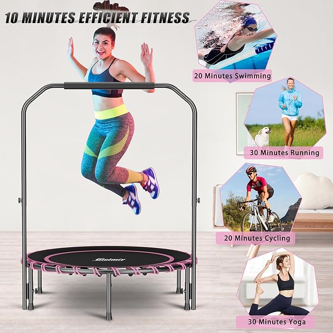 - ✅【Unique and Fun】: Trampoline an Aerobic Exercise, tone your body,Soft but Strong Bounce Back workout can maximize your cardio endurance, stamina,help build muscle mass and strengthen the shoulder, hip and leg muscles.A Perfect Home Gym Equipment for Men and Women,Even at an entry level, you’ll be able to pick it up quickly.