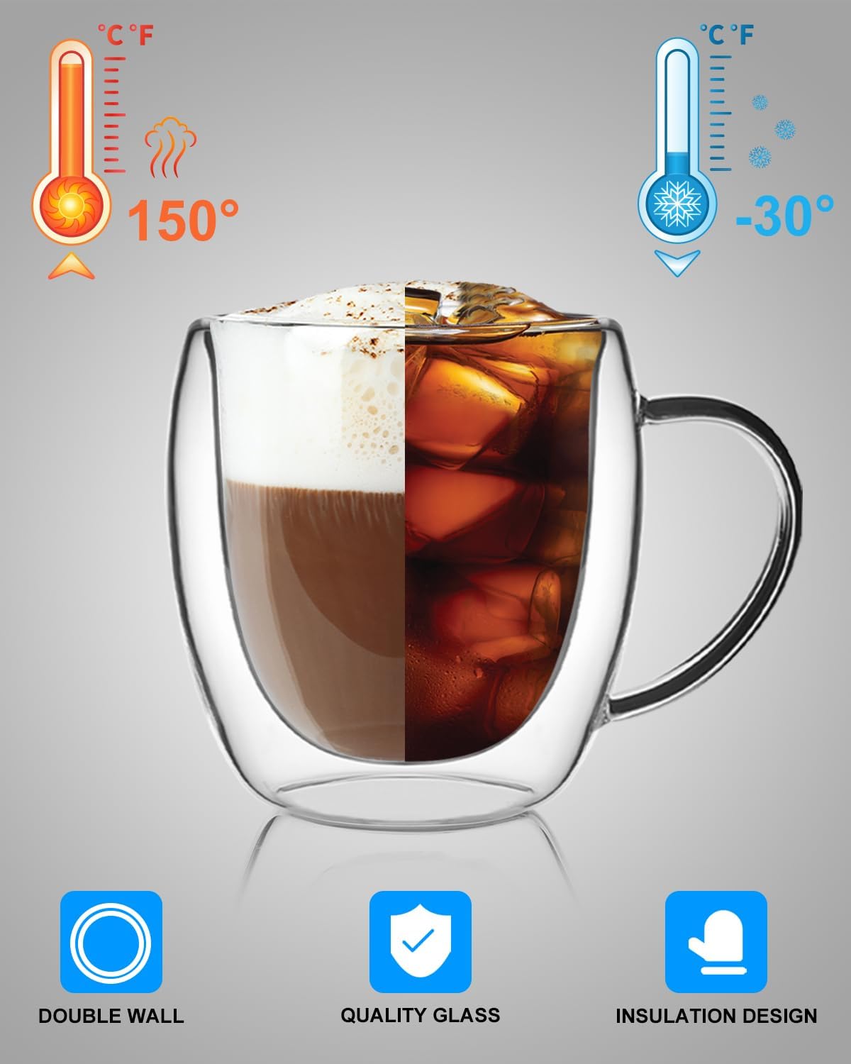 - ☕DOUBLE WALLED DESIGN - LIBWYS glass coffee cups are double-walled and have an excellent thermal insulation effect, which helps keep your drinking hotter or colder for longer and also prevents surfaces from becoming too hot (or too cold) to grip.