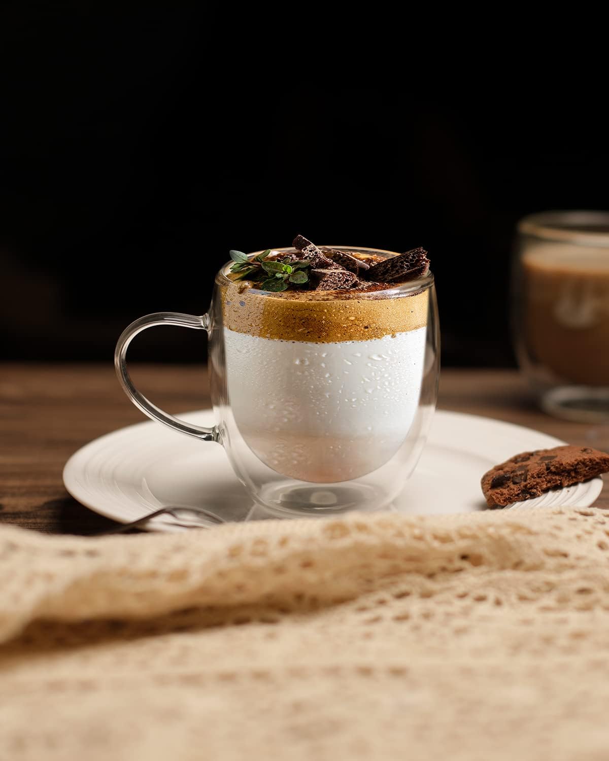 - 4x250ml CAPPUCCINO CUPS - Double-walled coffee glasses are designed with an exquisite package and are also a perfect gift choice for Christmas, Valentine's Day, Mother's Day, and housewarmings.