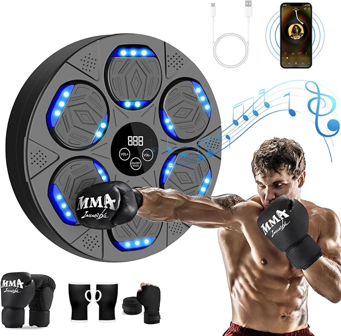 Smart Music Boxing Machine for Adults and Kids, Boxing Equipment with Boxing Gloves, Wall Mounted Electronic Punching Machine for Home Gym Workout Indoor