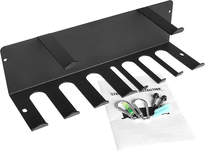 - Prongs of different spacing and width can be used to place different fitness equipment, and the upper hook can be used to place yoga mats, foam rollers, storage bags and other items