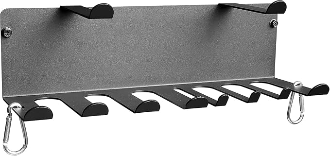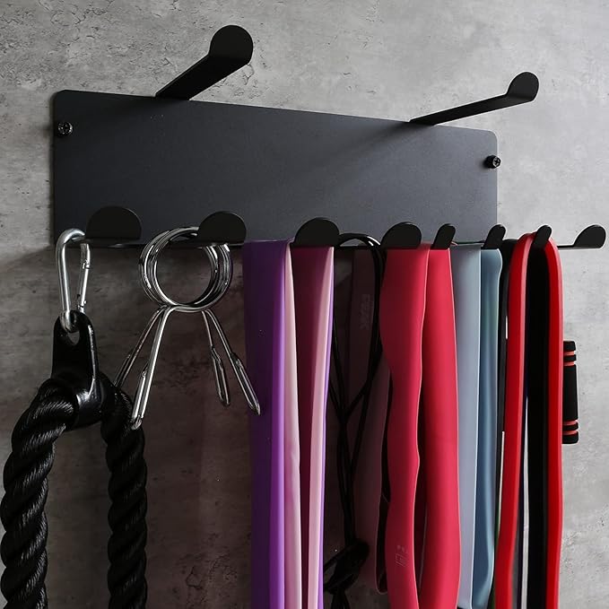 - The angled lip on the end can hold exercise equipment in place. Easily hang lifting belts, chains, jump ropes, resistance bands, gym bags, large loop bands, stretch straps, suspension straps and any other exercise tools