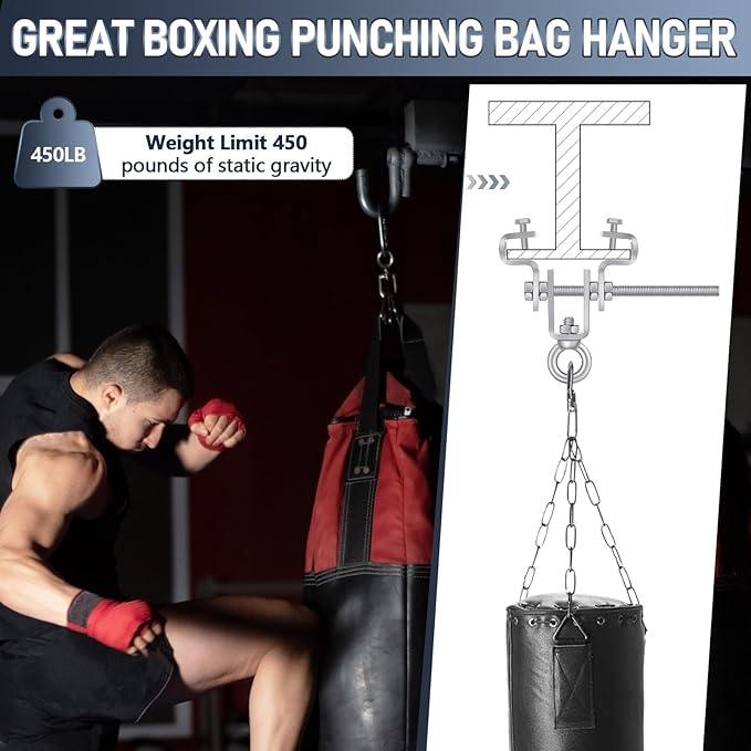 - Nice Fastening and Safety: the i beam hanger is designed with good fastening, enhancing safety; It can withstand a hanging weight of up to 450 pounds, suitable for taekwondo, sandbag, swing or other heavy bag training