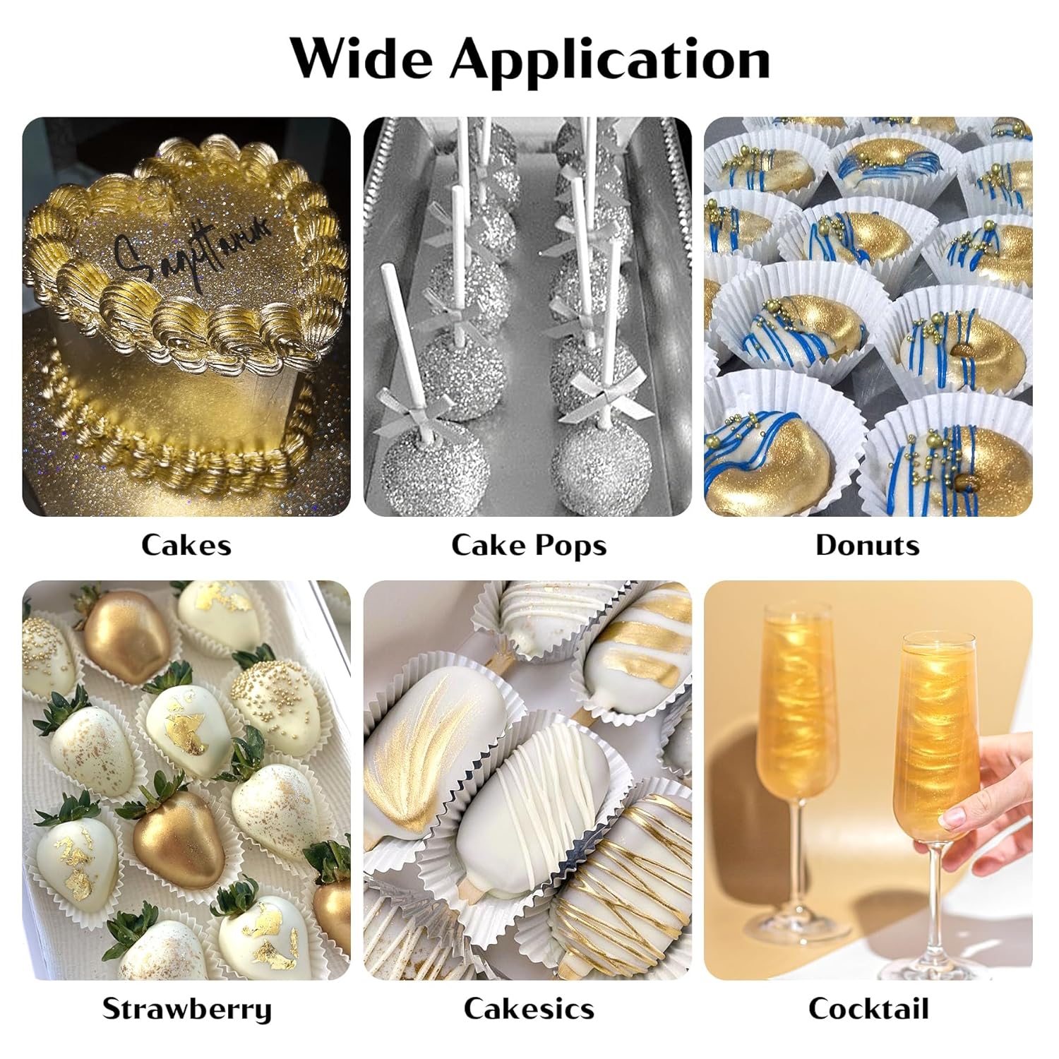 - 🍭[ Easy to Use ] Our edible glitter can be added directly to cakes, desserts, cocktails, and drinks. The luster dust edible can also be mixed with oil-based flavorings and applied using a brush for your DIY baking or desserts!