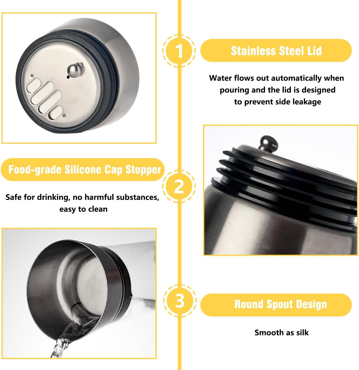 - Special Feature : Non-Slip Base, Stainless Steel Gravity Lid, Sturdy