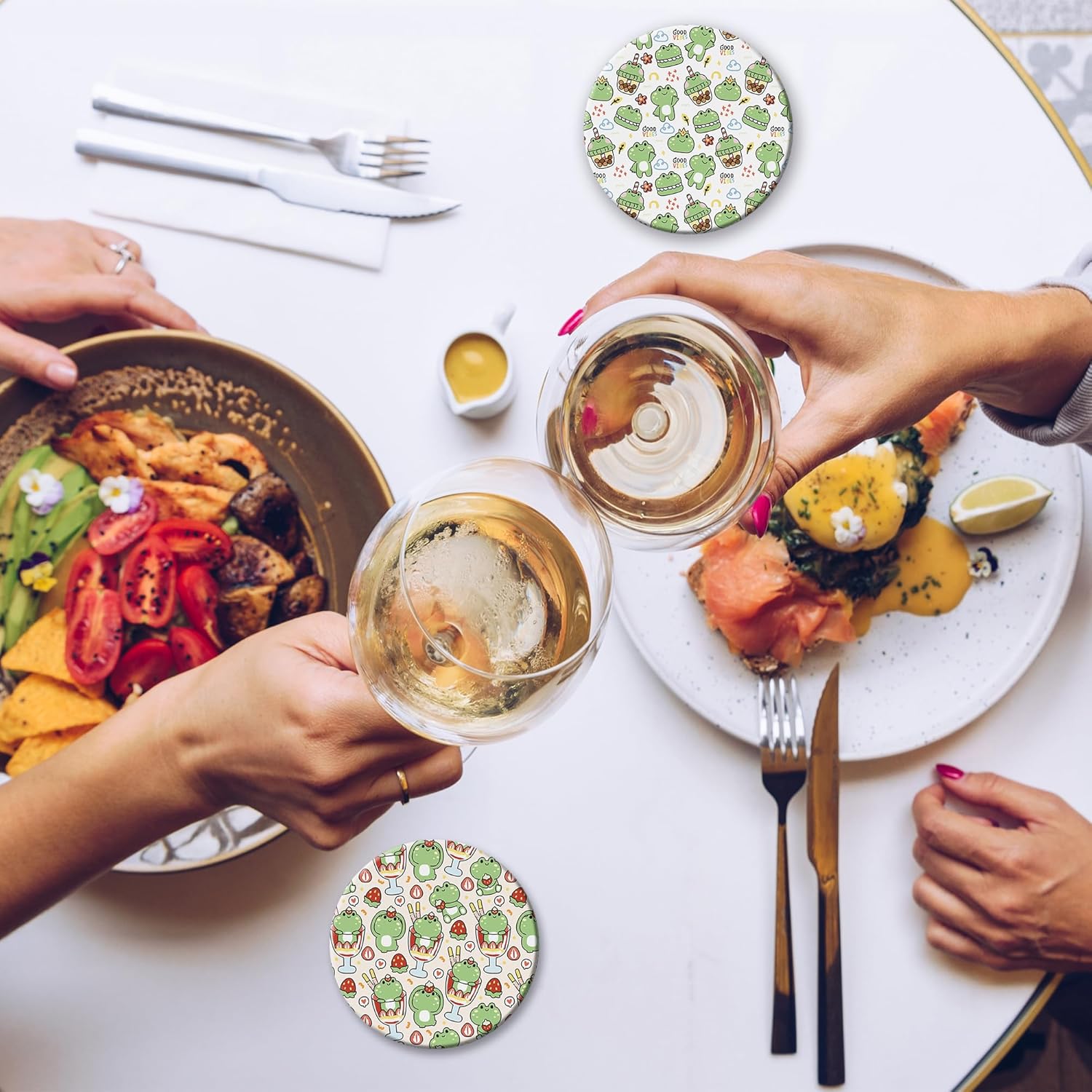 6 Pcs Coasters for Drinks with Holder, Cute Frog Absorbent Ceramic Coasters with Cork Base,Cute Funny Table Drinks Coasters Tabletop Protection Mat,Table Home Decor,4 Inches