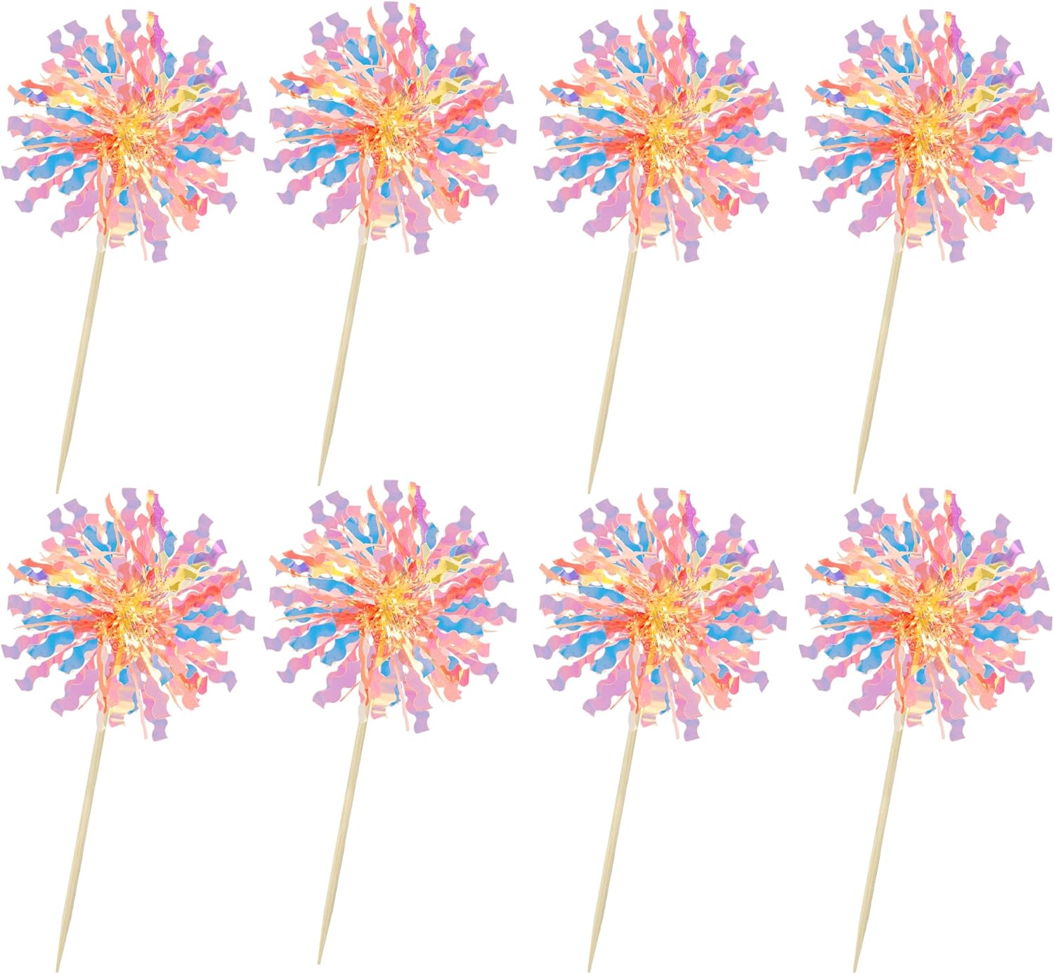 Ephlyn 30Pcs Foil Firework Cupcake Toppers Happy Birthday Cake Toppers Tinsel Flower Drink Stirrers Cocktail Food Fruit Toothpicks for Valentine's Day Party Decorations Orange