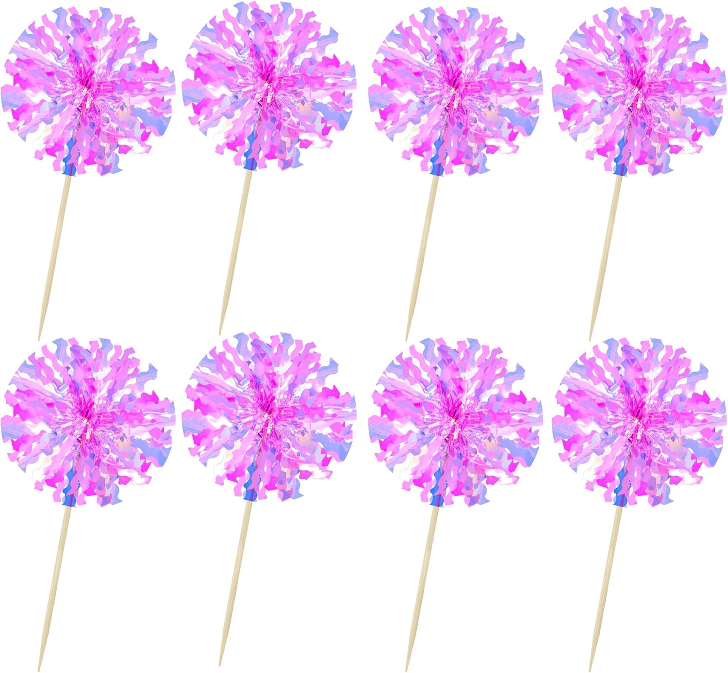 Ephlyn 30Pcs Foil Firework Cupcake Toppers Happy Birthday Cake Toppers Tinsel Flower Drink Stirrers Cocktail Food Fruit Toothpicks for Valentine's Day Party Decorations Rose Red