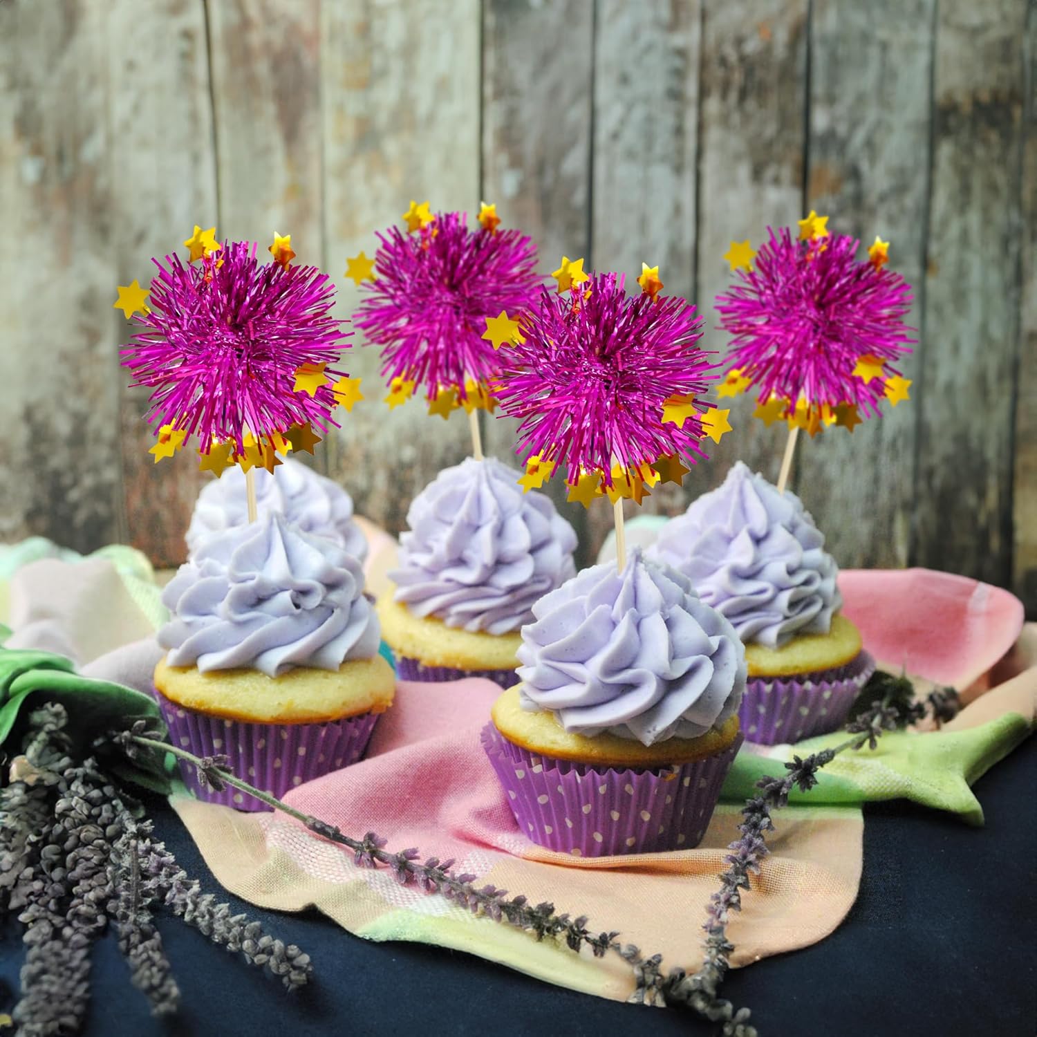 - 【NO Required】: 30Pcs Foil Firework cupcake toppers can put in the cake directly! These 30Pcs Foil Firework Cupcake toppers save your time and super easy to use. You can easily dress up your birthday theme cakes, yes! but don't stop there, put them into desserts, cookies, fruit pieces, appetizers, muffins and so much more!