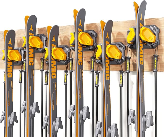 - Multifunctional and Space-Saving Storage: Skifavs ski holder is designed for vertical storage, allowing you to save valuable garage space. Say goodbye to cluttered ski storage and welcome a well-organized setup. Neatly organize your home, garage, cabin, or ski resort. Take up a small amount of space and makes a great display of your beautiful skis. No more piled up skis in a corner!