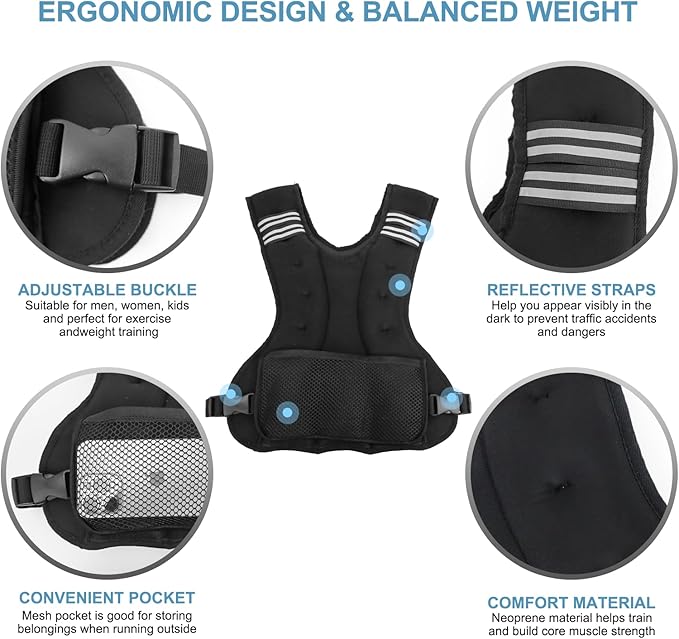- HELPFUL & SAFE - If you're weighted workout vesting outdoors or engaging in low-light exercises, even while out and about, you'll stay safe and easy to see thanks to the high-visibility reflective strips on the shoulders and back