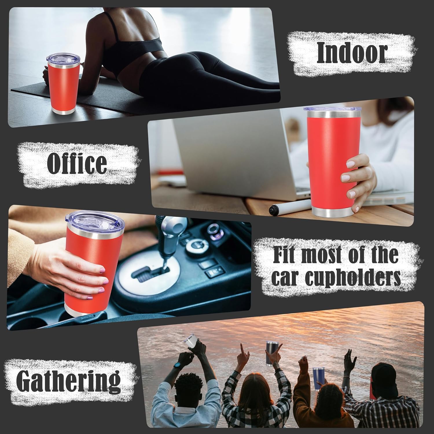 20 oz Tumbler Coffee Tavel Tumblers Bulk with Lid Stainless Steel Double Wall Vacuum Insulated Mug Powder Coated Cups fit Car Cupholder for Hot and Cold - Red, 8Pack
