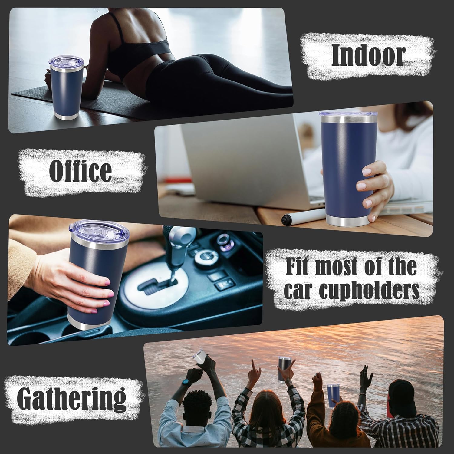 20 oz Tumbler Coffee Tavel Tumblers Bulk with Lid Stainless Steel Double Wall Vacuum Insulated Mug Powder Coated Cups fit Car Cupholder for Hot and Cold - Navy, 12Pack